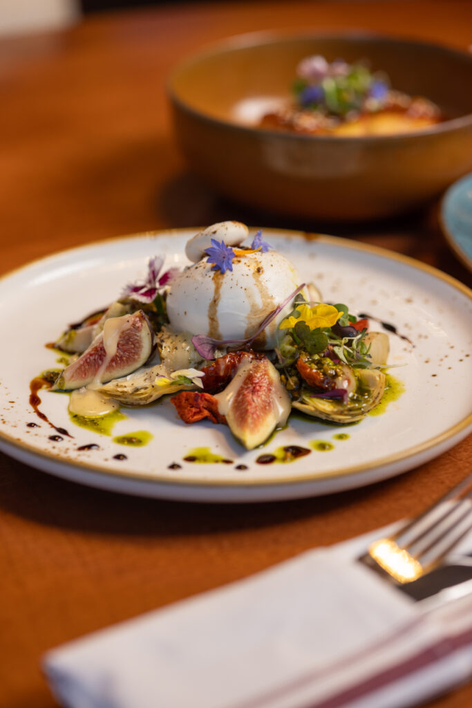 Grilled chesse: pain rustique garni de rillettes de canard, fromage Louis d’Or, compote de figues
